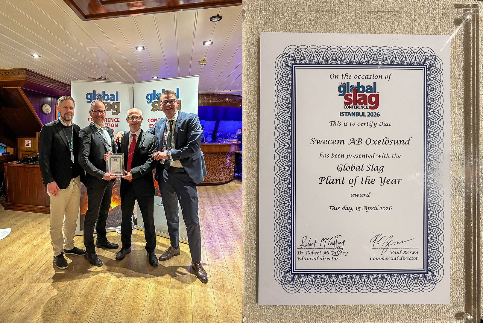 Swecems anläggning i Oxelösund har tilldelats den prestigefyllda utmärkelsen Global Slag Plant of the Year. Priset delades ut under 18th Global Slag Conference & Exhibition som just avslutats i Istanbul.
